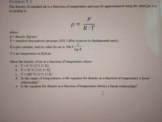Solved Problem 9 1 The Density Of Standard Air Is A Chegg Com